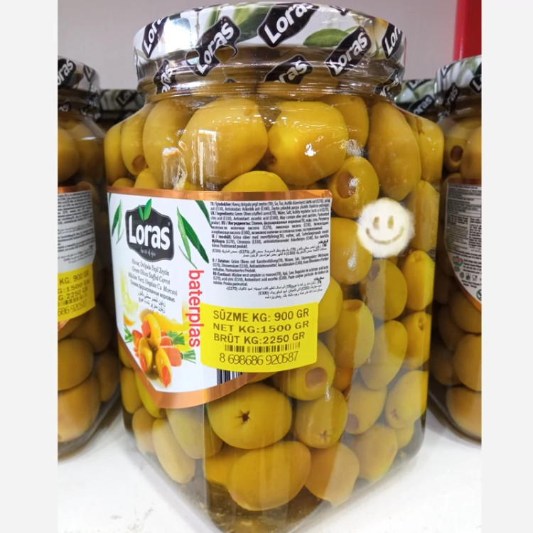زیتون سبز مغزدار لوراس در دو نوع هویج و سیر 900گرم