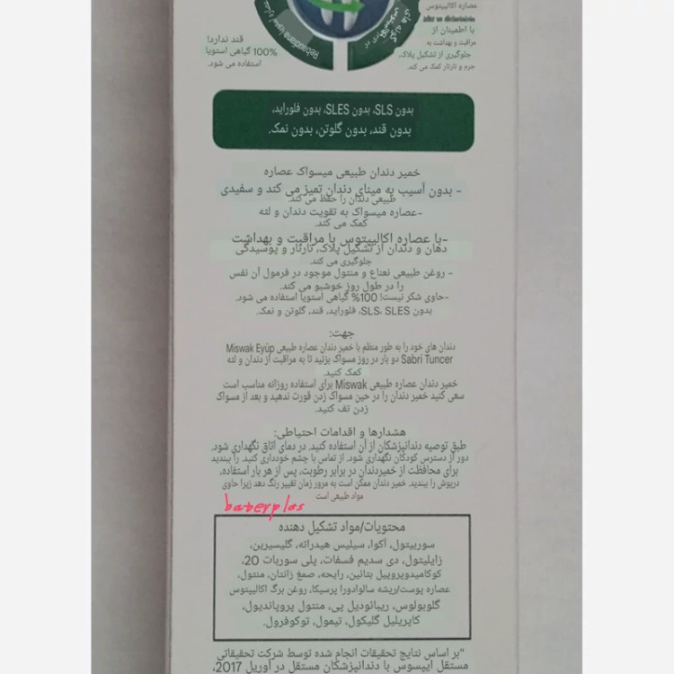خمیر دندان حاوی عصاره چوب مسواک ایوب صبری مدل DOGAL MISVAK حجم 90 میل
